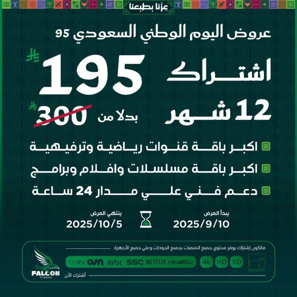 عرض يوم التاسيس اشتراك فالكون falcon iptv
